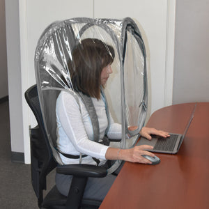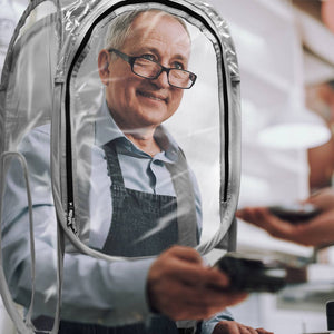 Be there, safely. The wearable Shield Pod will give you mobility while properly keeping you protected. Ideal in healthcare and home health care for both patients and caregivers. Teachers can help stay healthy during sniffles season in the classroom. Office workers can stay isolated while free to use computers, answer phones, and conduct business. The clear plastic panels give you a full 270° view around you and spacious armholes give you a full range of movement. Easy on and easy off, this pop-up Pod gives you instant protection without limiting what you can do. Available in both standard size for adults and a mini size for kids. Stay safe while doing what youneed to do.